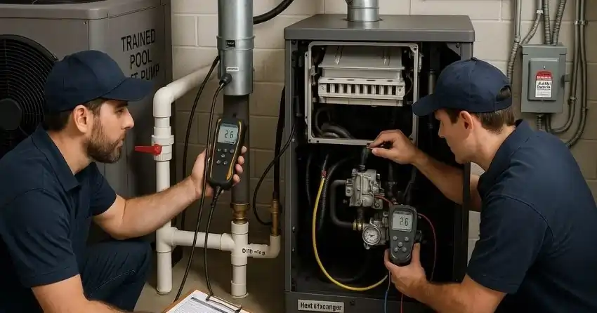 Pool heater repair problems in Delaware? HVAC Delaware finds the cause, replaces igniters, sensors, gas valves, control boards, and heat exchangers, clears scale, and confirms operation so the water warms up without unnecessary upsells.